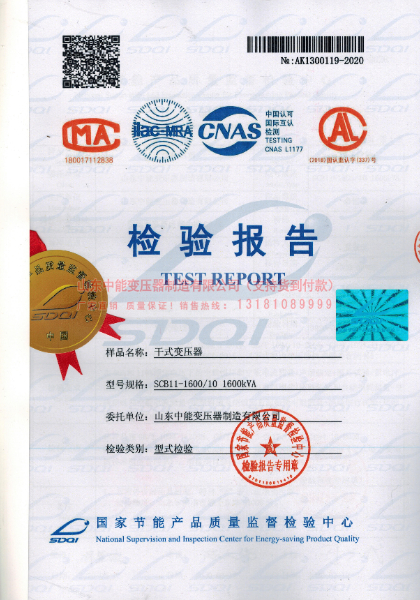 SCB11幹式變壓器(qì)檢驗報(bào)告