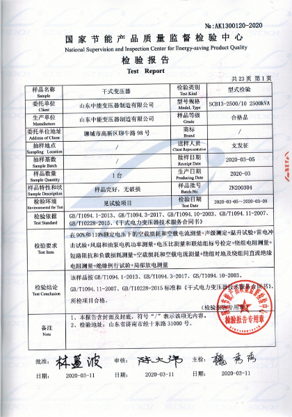 SCB13幹式變壓器(qì)形式試驗報(bào)告-查詢:
