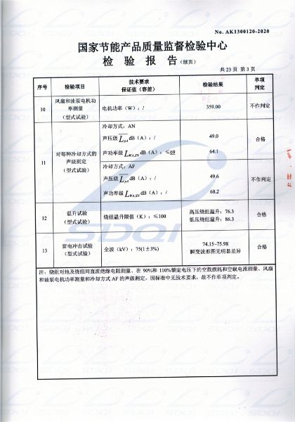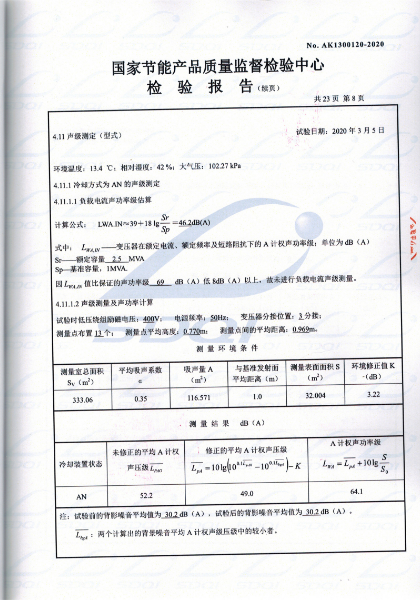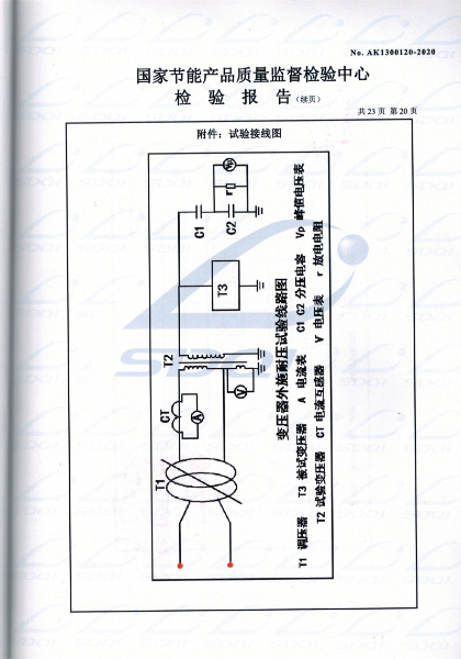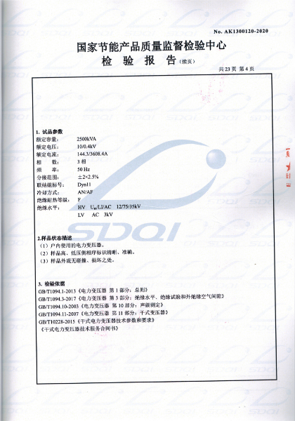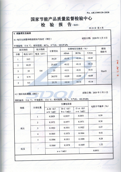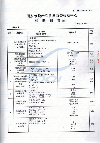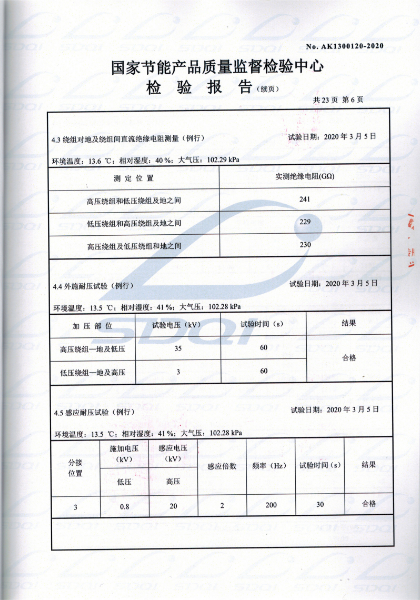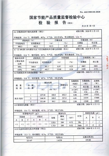 國(guó)家(jiā)節能(néng)産品® ∑質量監督檢驗中心 查詢編号:AK1300120 &€÷✘nbsp;查詢備案證書(shū)号:GJJN-B-K2000120 批準日(rì)前:2020-03-11 公司名稱:遼甯大華鑫特變壓器制造有限公司