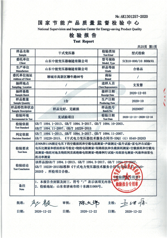 上(shàng)一(yī)篇: SCB13幹式變壓器(qì)形式試驗報(bào)告